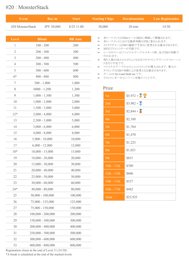 | 公式ページ | https://pokerjapan.jp/wp-content/uploads/2024/07/SPADIE-34th-Players-Guide.pdf |