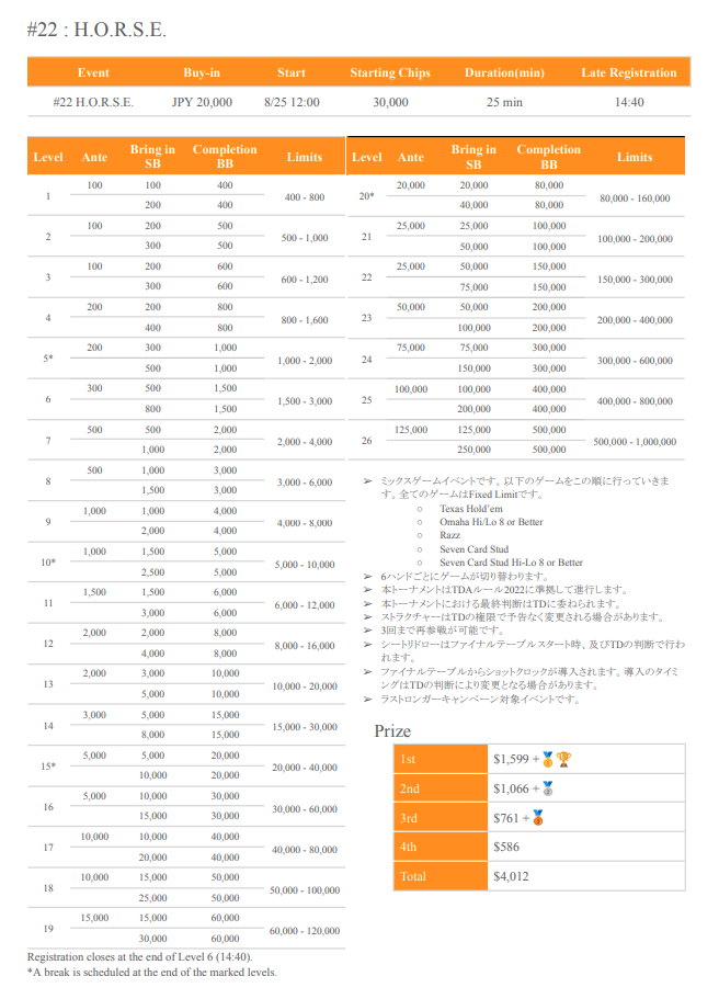 | 公式ページ | https://pokerjapan.jp/wp-content/uploads/2024/07/SPADIE-34th-Players-Guide.pdf |