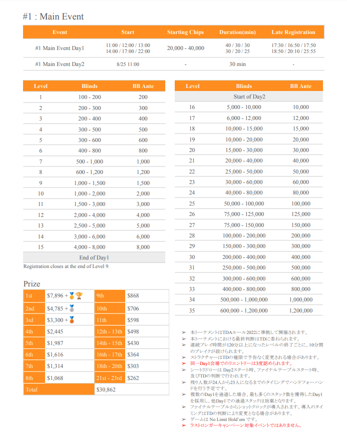 | 公式ページ | https://pokerjapan.jp/wp-content/uploads/2024/07/SPADIE-34th-Players-Guide.pdf |