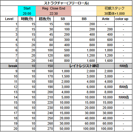 | ゲーム | 20,000点 / ノーリミット / テキサスホールデム / normal / Ticket |