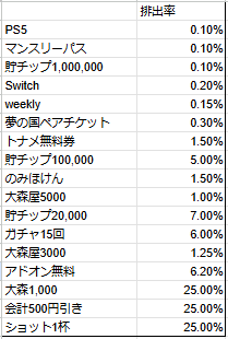 - ガチャ排出率表