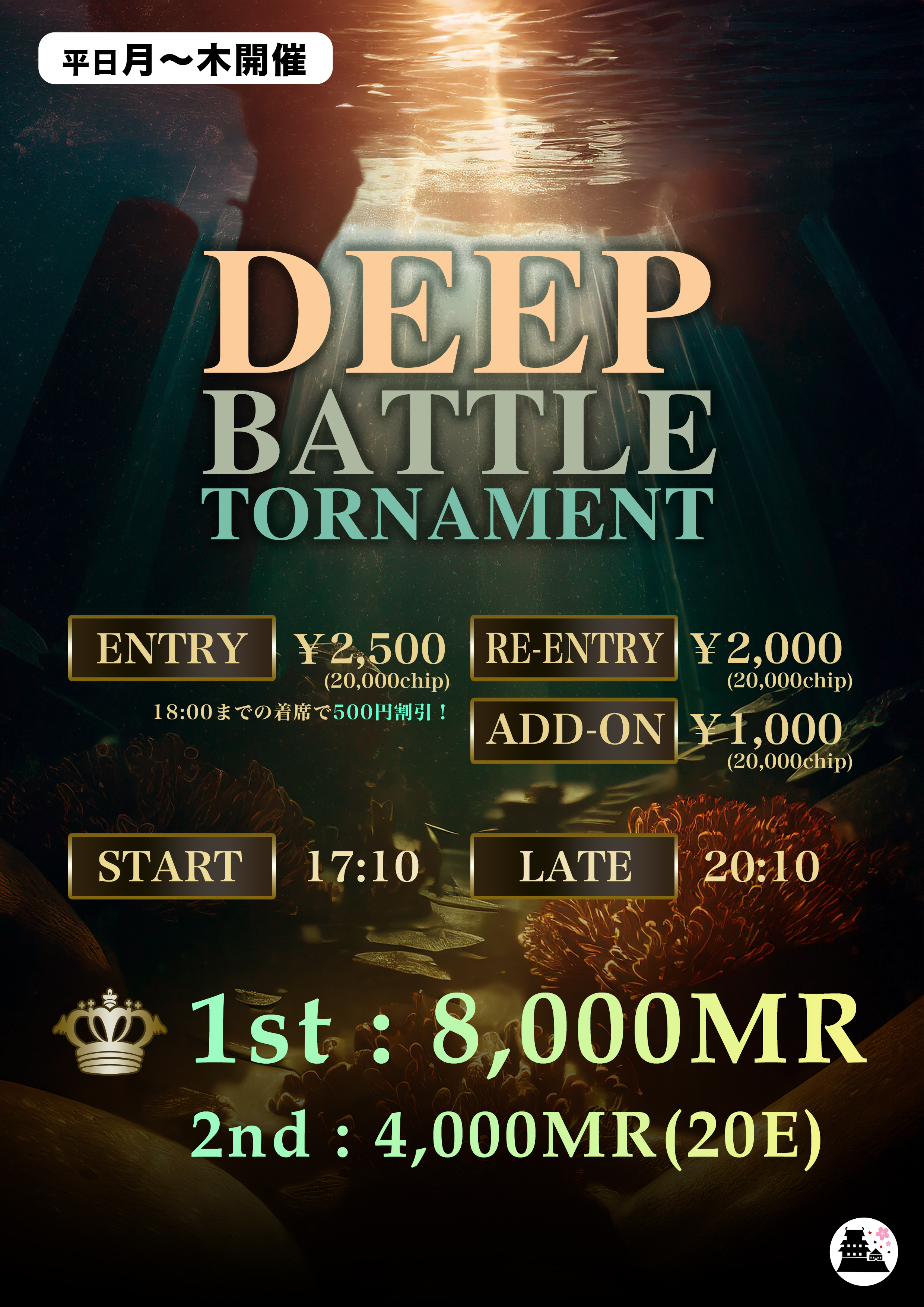 【2,500yenトーナメント】Myroom♠DEEP BATTLE TOURNAMENT♠【サブスクがお得!】