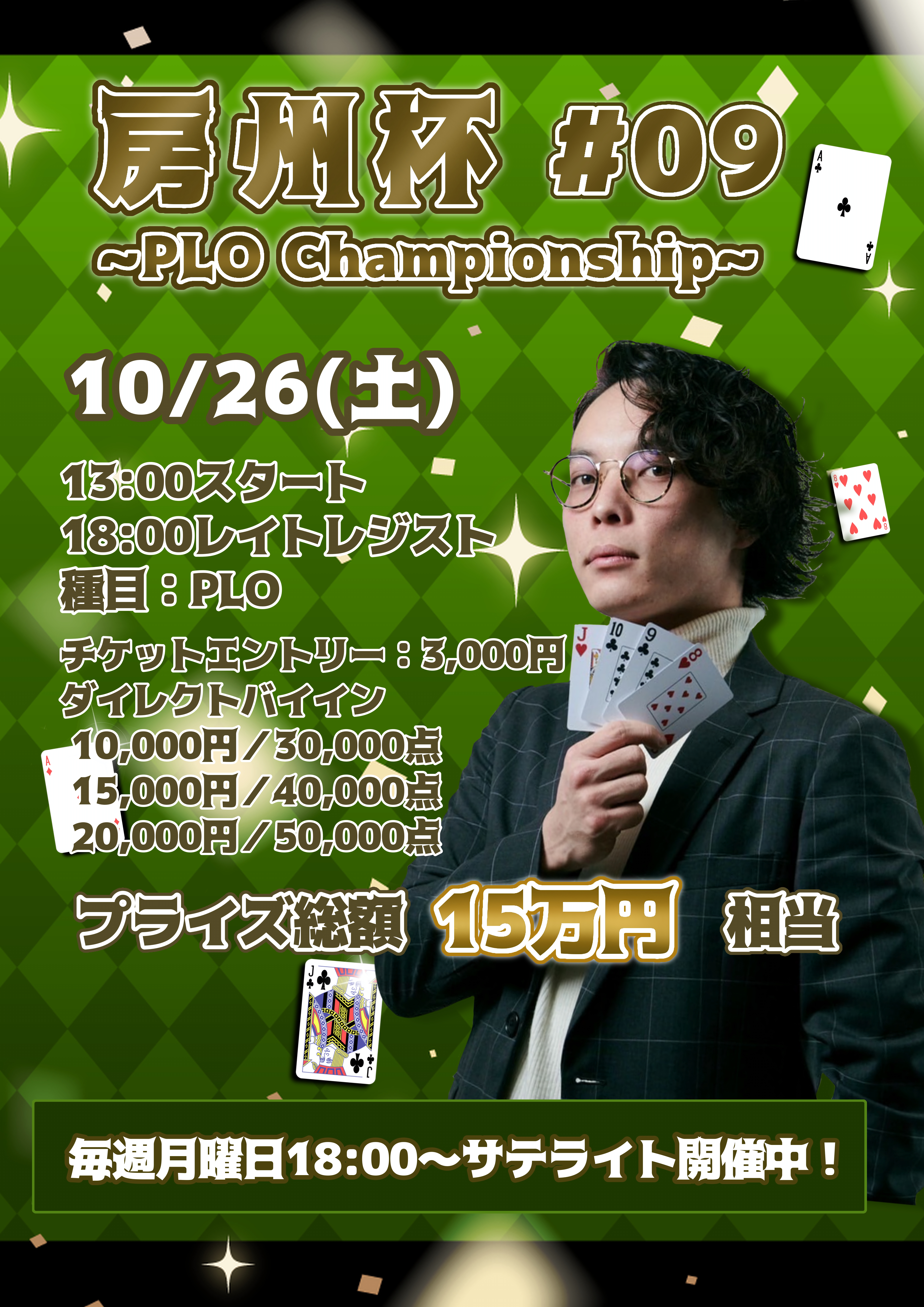 | 12/15(月) | 16:00 | 【JOPT】1000円で参加できる1卓限定 サテライト | EGP EBISU |