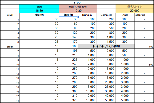 | ゲーム | 20,000点 / リミット / セブンカードスタッド ハイロー / normal / Ticket |