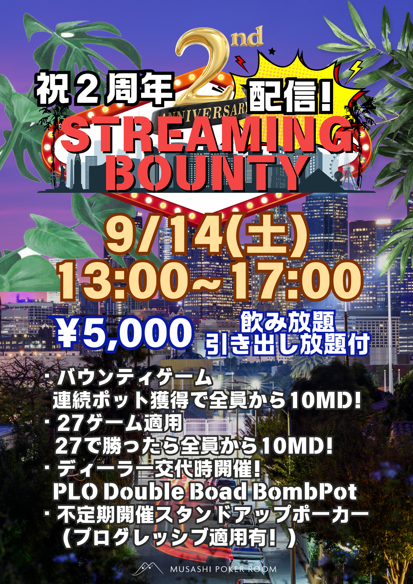 MUSASHI POKER ROOMを記念するむさぽ2周年祭