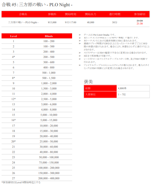 ←戦国ポーカーツアー-秋の陣- 大決戦概要(Player’s Guide)はこちら!