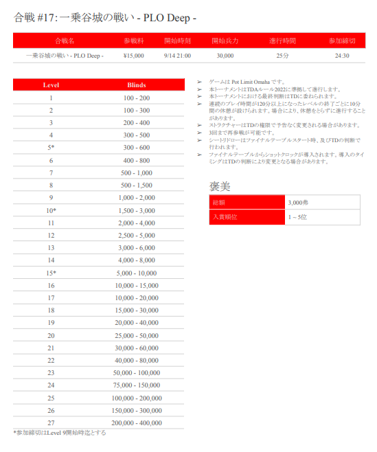 ←戦国ポーカーツアー-秋の陣- 大決戦概要(Player’s Guide)はこちら!
