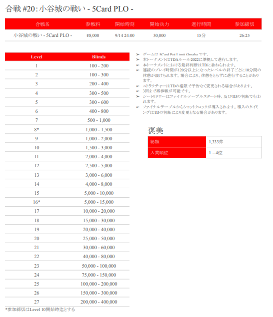←戦国ポーカーツアー-秋の陣- 大決戦概要(Player’s Guide)はこちら!