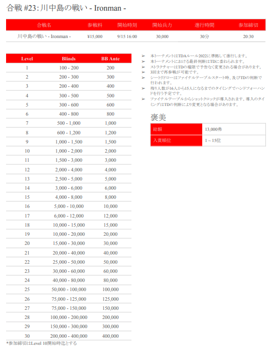 ←戦国ポーカーツアー-秋の陣- 大決戦概要(Player’s Guide)はこちら!