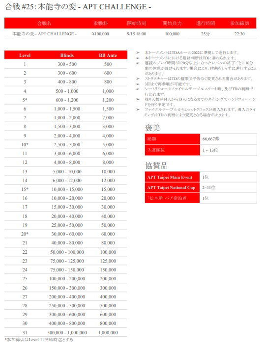 ←戦国ポーカーツアー-秋の陣- 大決戦概要(Player’s Guide)はこちら!