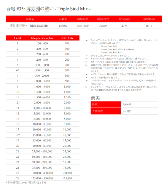 ←戦国ポーカーツアー-秋の陣- 大決戦概要(Player’s Guide)はこちら!