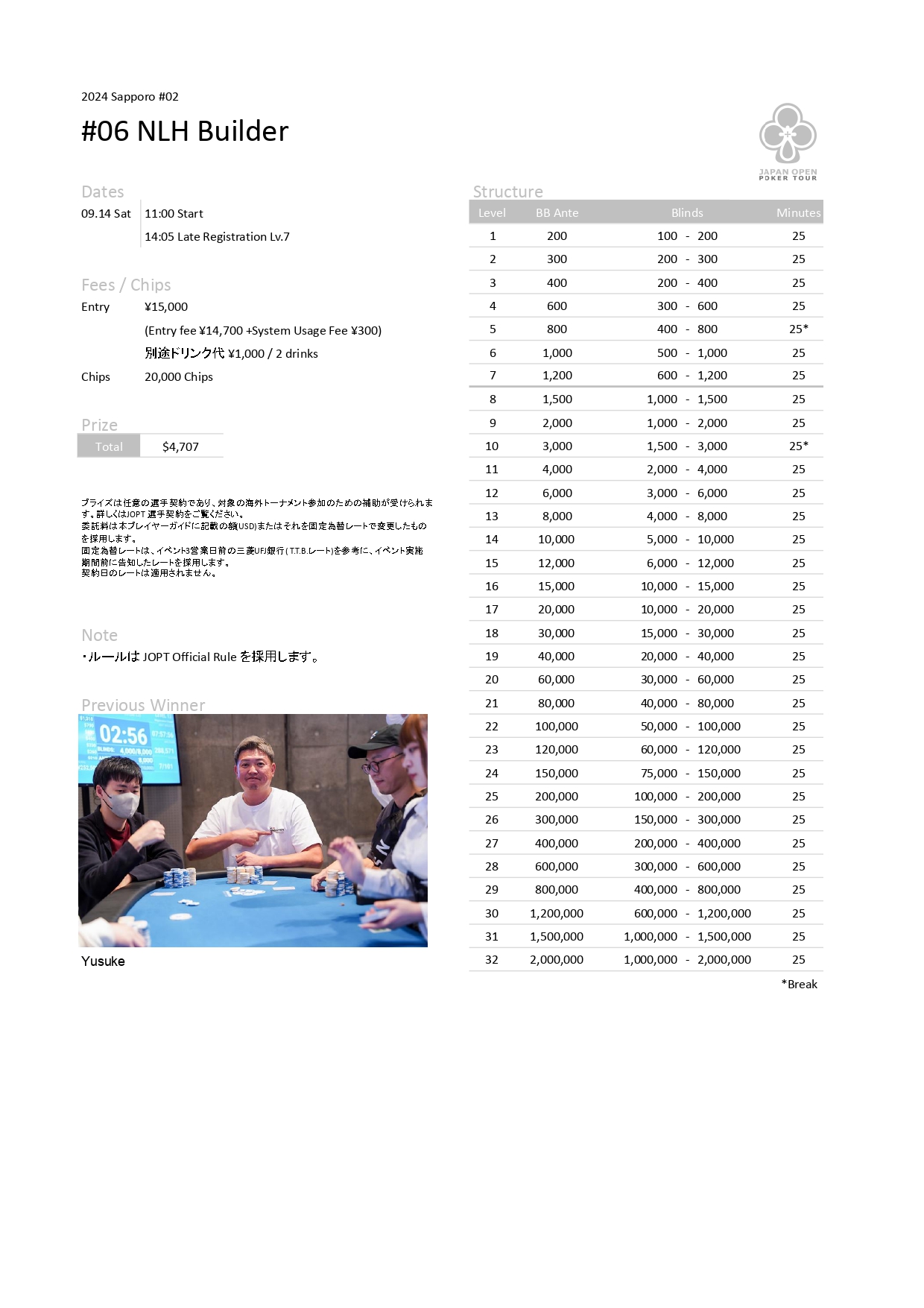 | 公式ページ | https://japanopenpoker.com/sapporo/ |