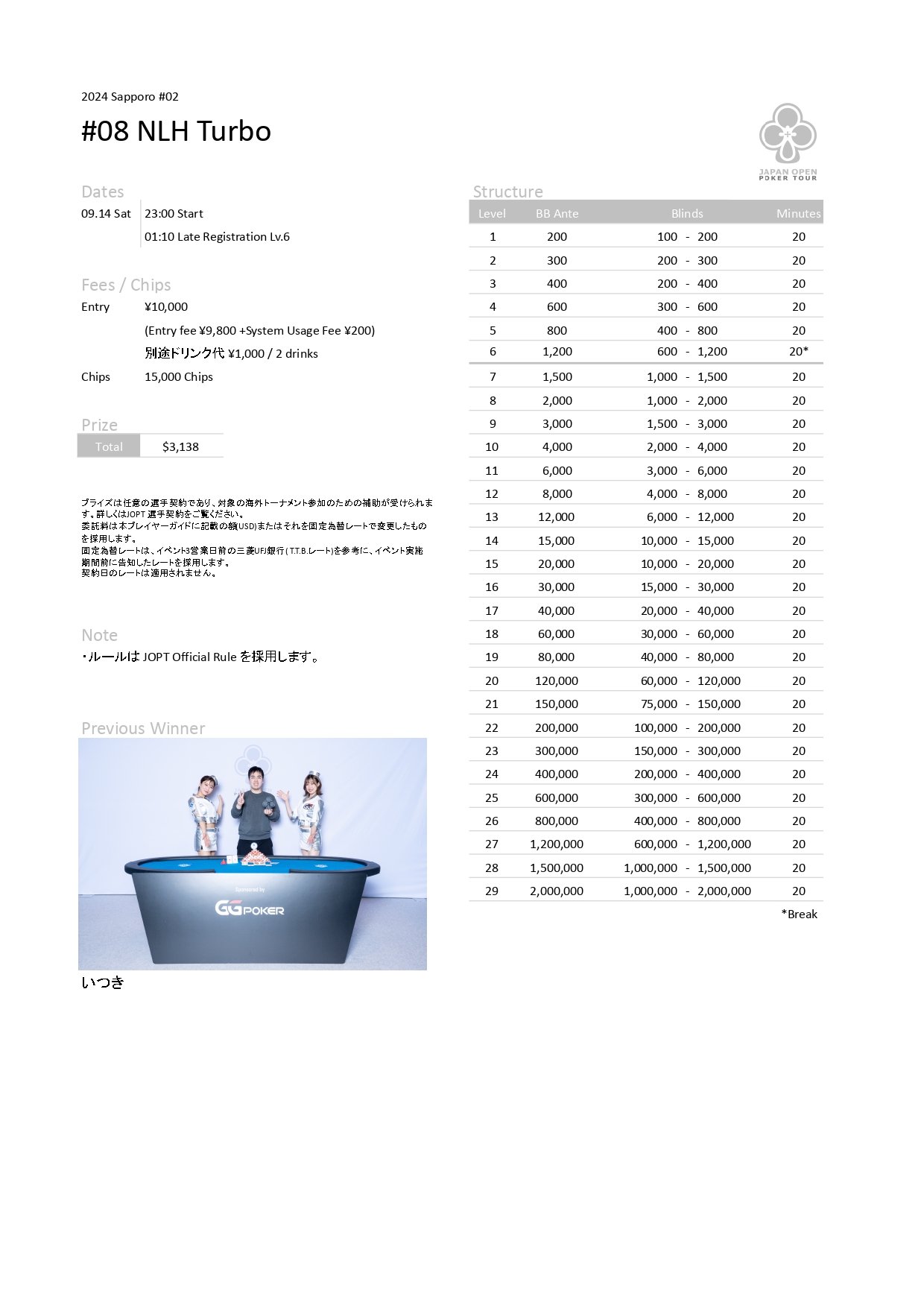 | 公式ページ | https://japanopenpoker.com/sapporo/ |
