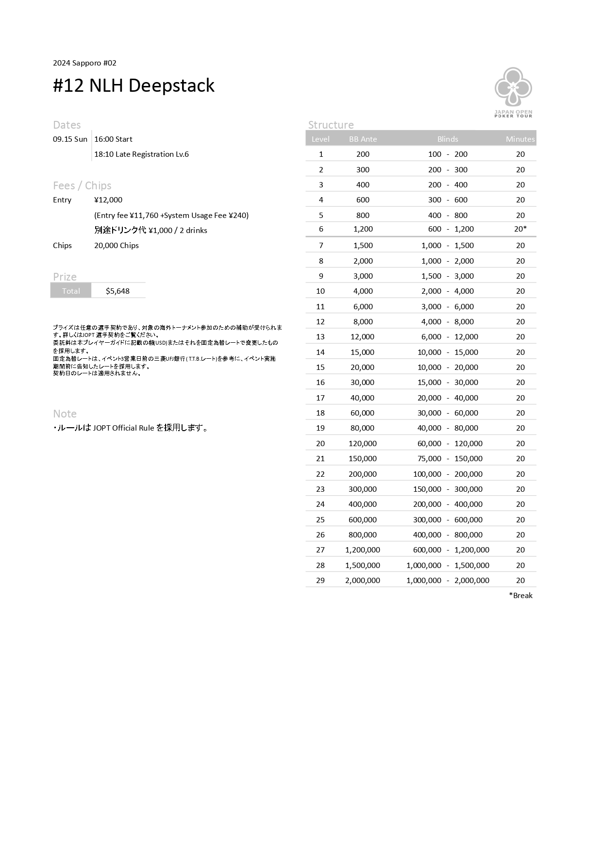 | 公式ページ | https://japanopenpoker.com/wp-content/uploads/2024/08/24Sapporo02_12Deepstack.pdf |