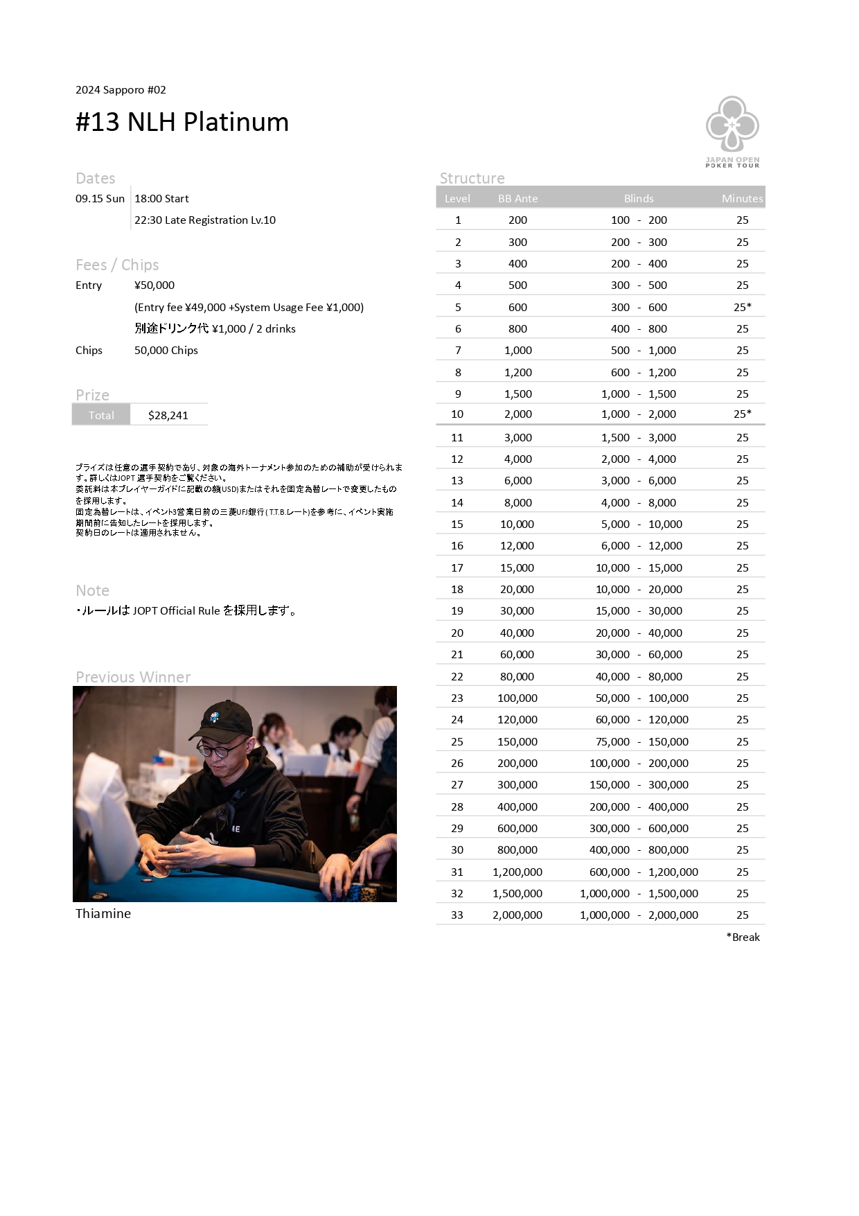 | 公式ページ | https://japanopenpoker.com/wp-content/uploads/2024/08/24Sapporo02_13Platinum.pdf |