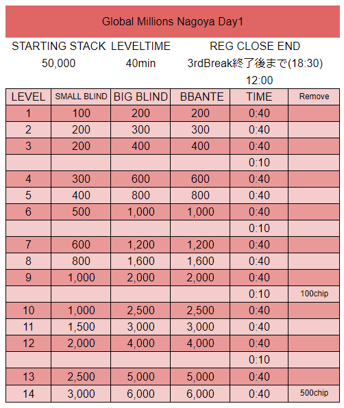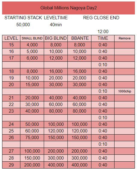 | ゲーム | 50,000点 / ノーリミット / テキサスホールデム / ノーマルストラクチャー / ナゴヤギルド ポイント |