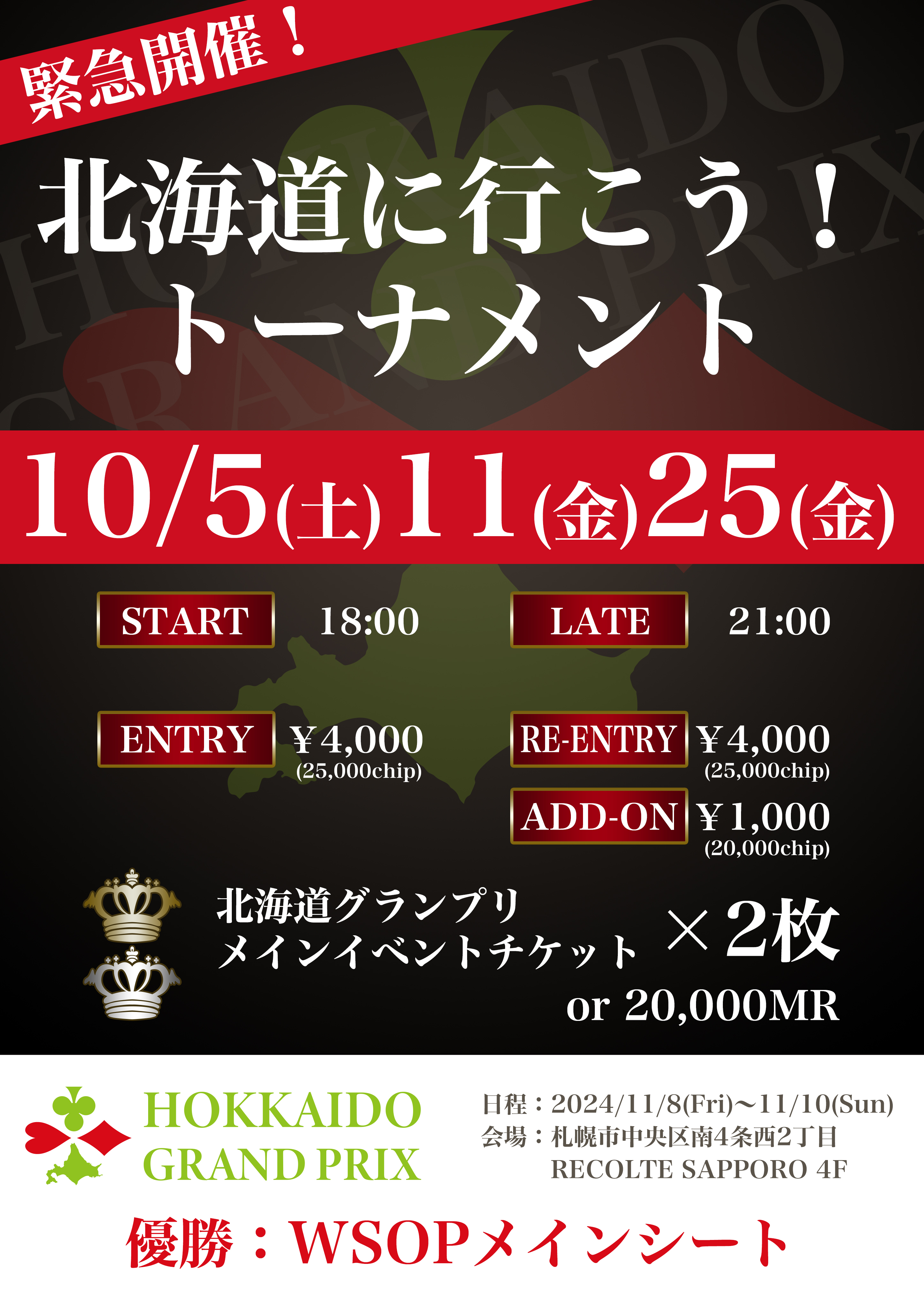 【北海道グランプリメインチケット】北海道へいこう!トーナメント【2位まで各2枚】