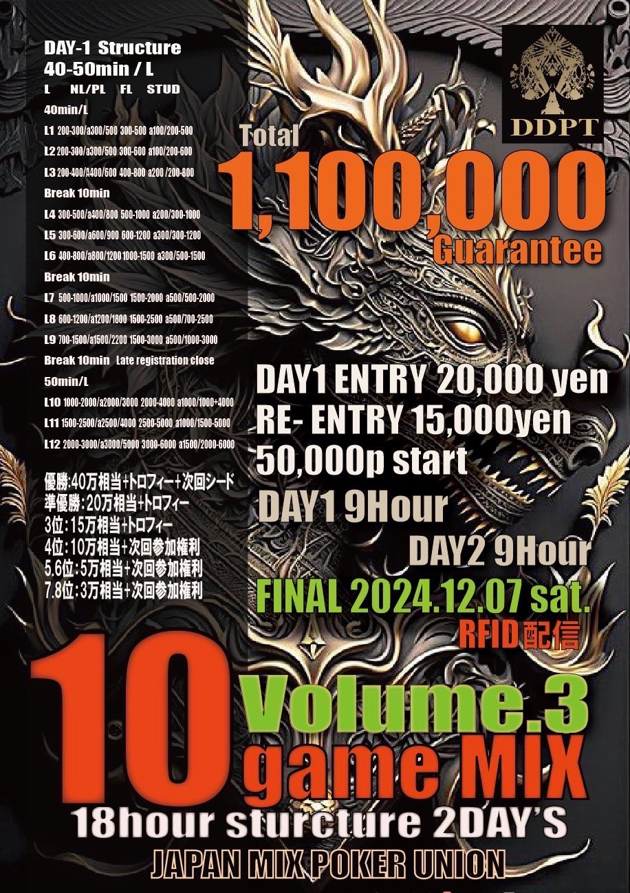 中野DDPTの10GAME MIX Volume.3を11/12(火)14:30~NEKOKAJI新宿でも開催致します!