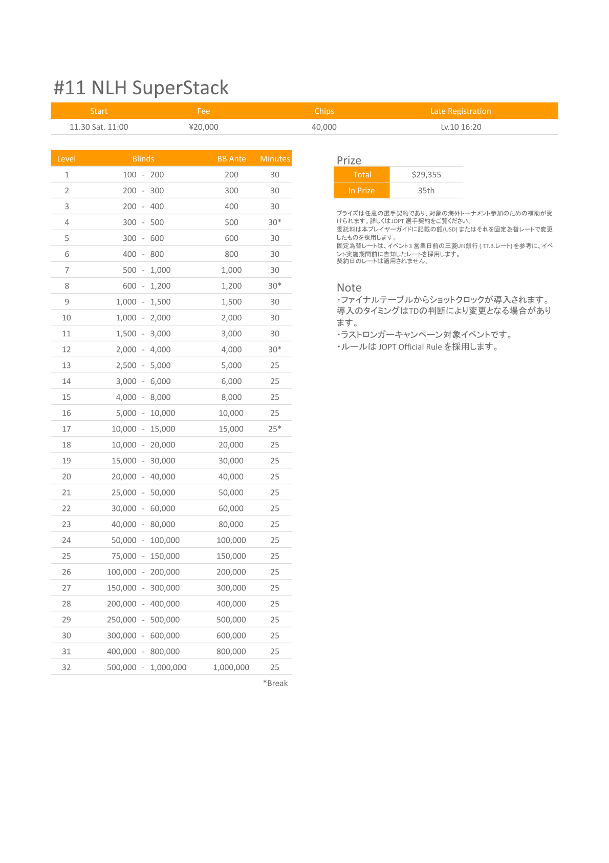 | 店舗名 | JAPAN OPEN POKER TOUR |