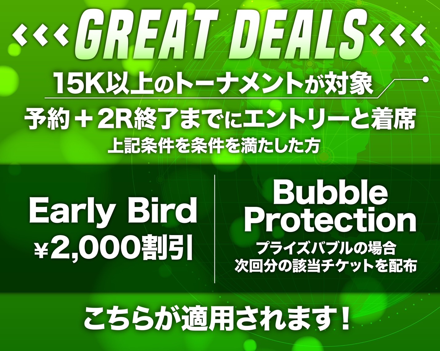 ①Early Bird 2R終了までにエントリー&ご着席で2,000円割引
