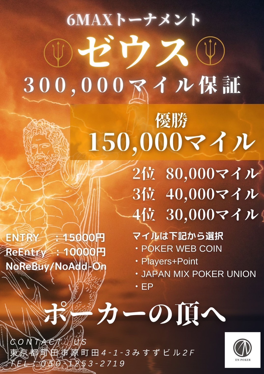 | 12/15(月) | 16:00 | 【JOPT】1000円で参加できる1卓限定 サテライト | EGP EBISU |