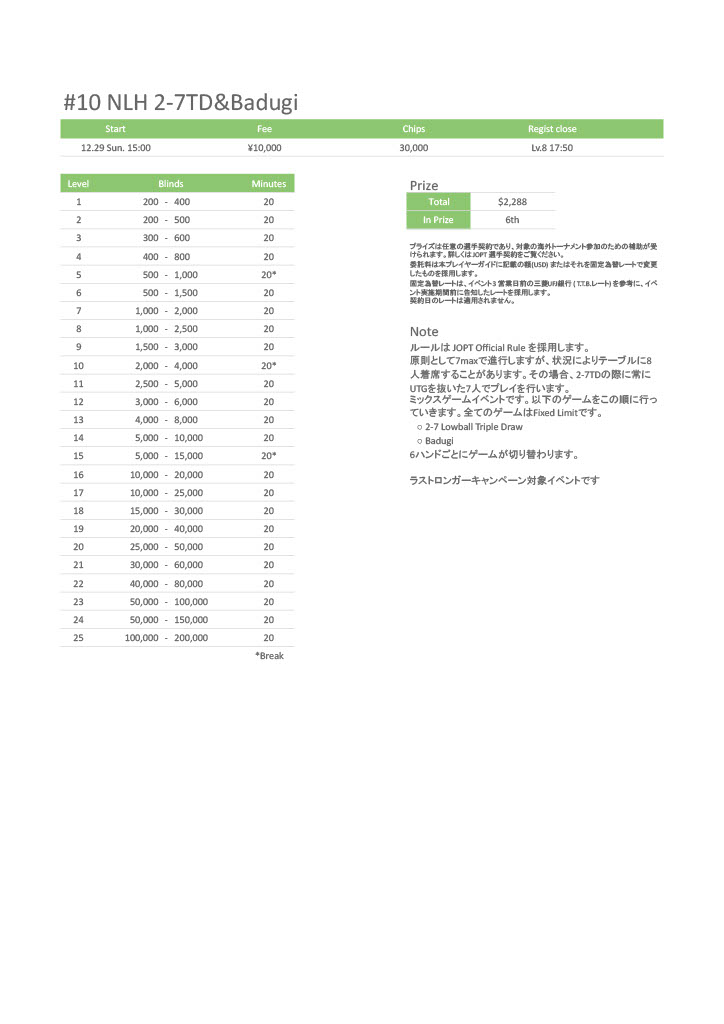 | 店舗名 | JAPAN OPEN POKER TOUR |