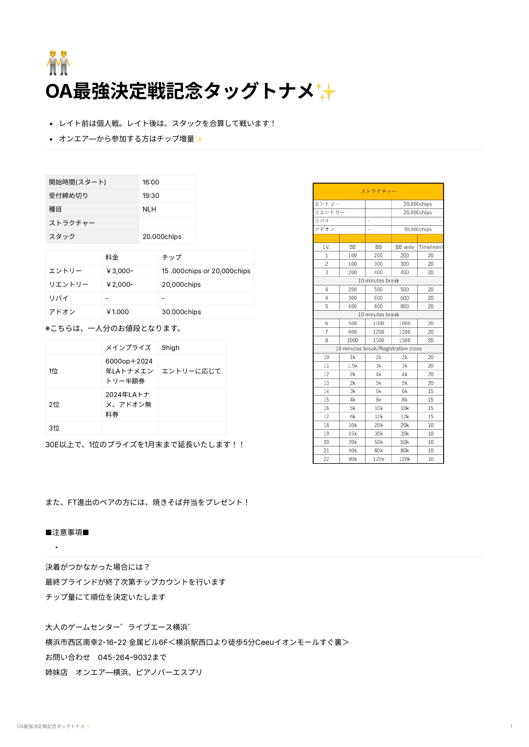 OAからのはしご特典有り【タッグトーナメント】〆切19:30