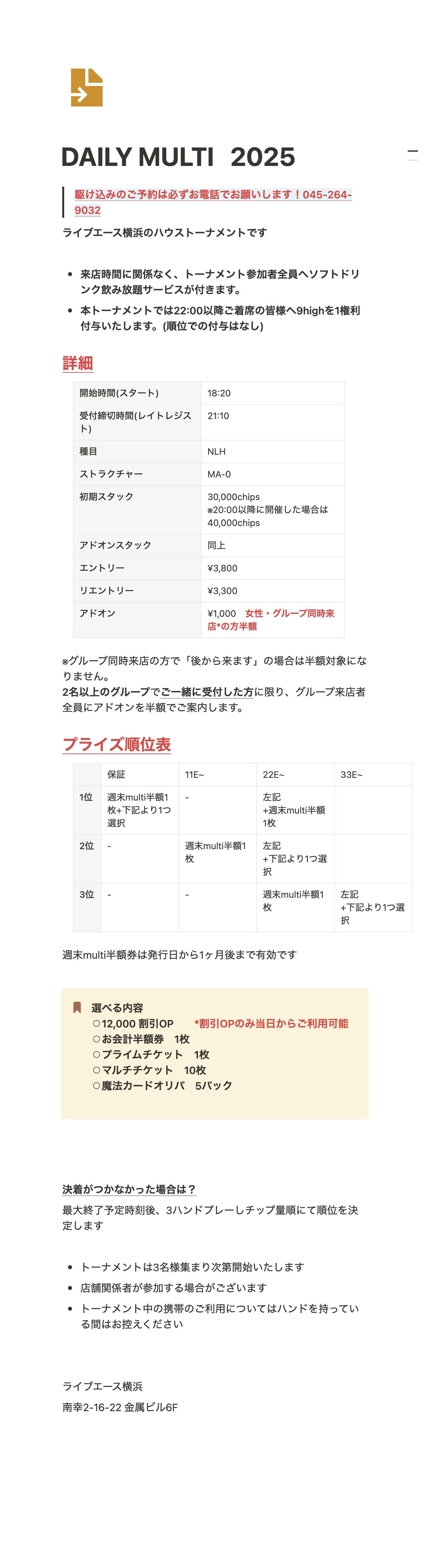 | 店舗名 | ライブエース横浜→横浜駅西口 |