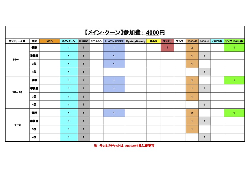 ♡2000円off/1000円offクーポン・・・トーナメント/リングゲームの2000円/1000off円割引としてご利用いただけます(sit&goは不可)