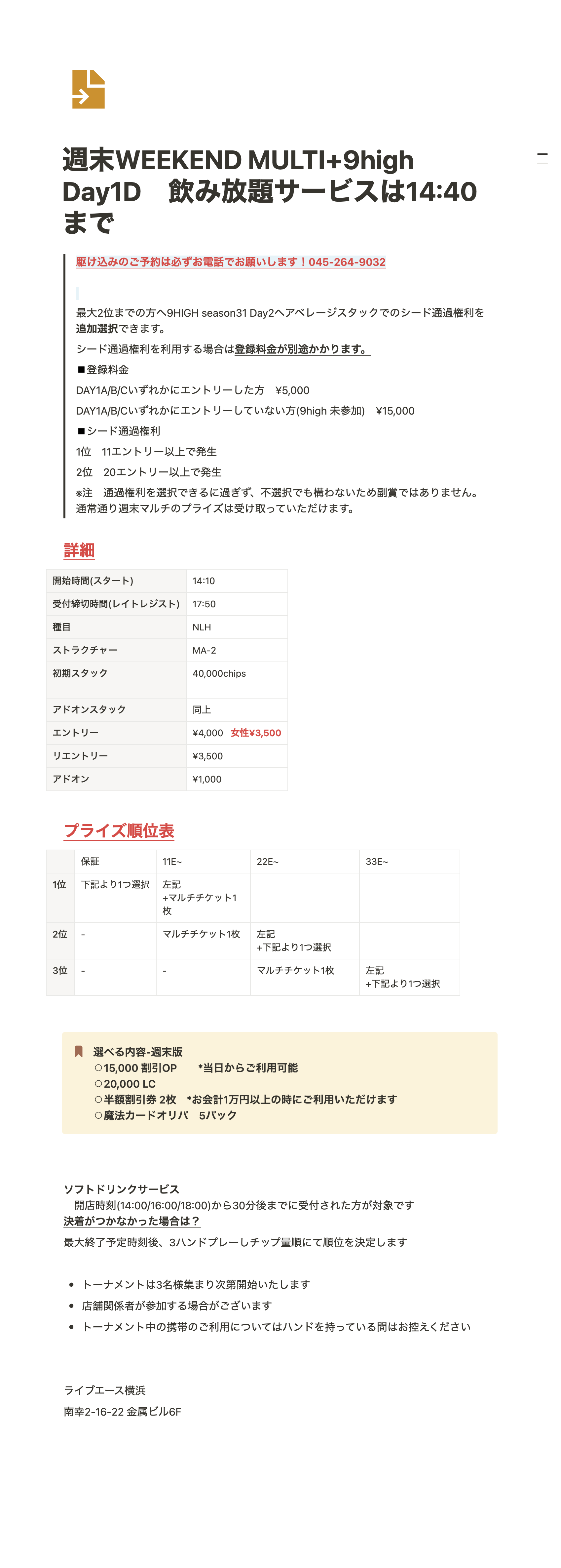 | 店舗名 | ライブエース横浜→横浜駅西口 |