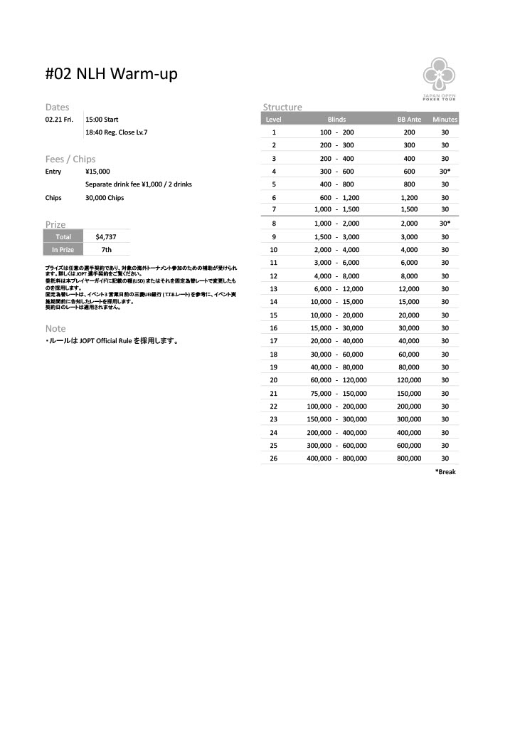 | 公式ページ | https://japanopenpoker.com/sapporo/ |