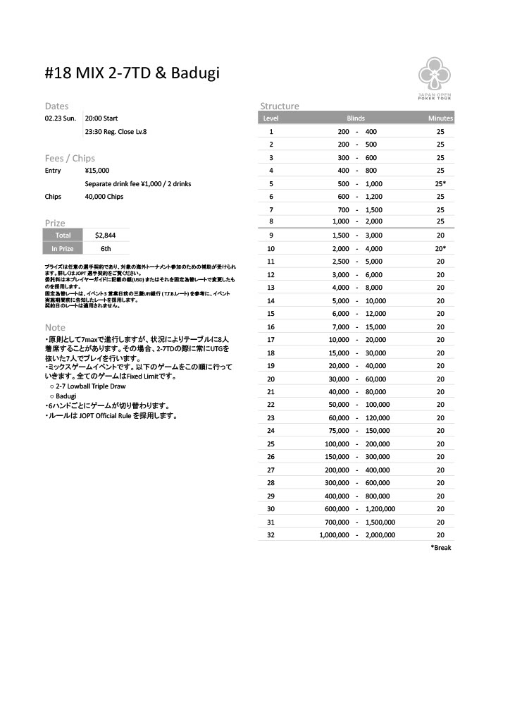 | 公式ページ | https://japanopenpoker.com/sapporo/ |