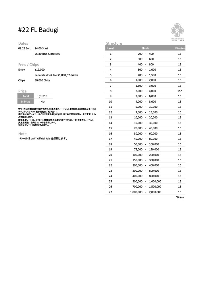 | 公式ページ | https://japanopenpoker.com/sapporo/ |