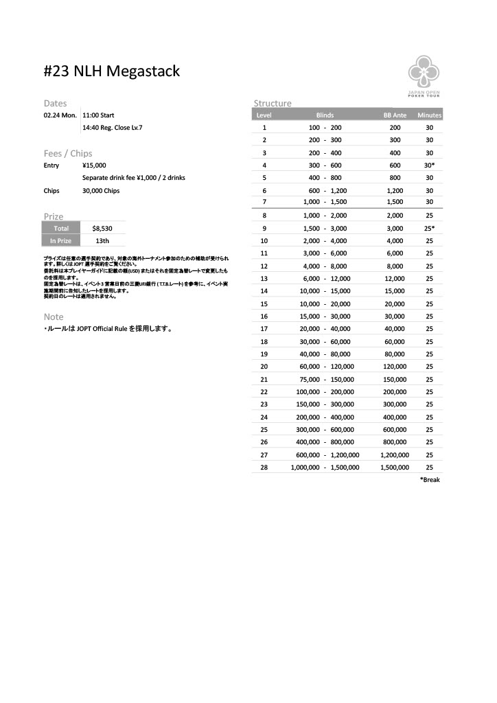 | 店舗名 | JAPAN OPEN POKER TOUR |