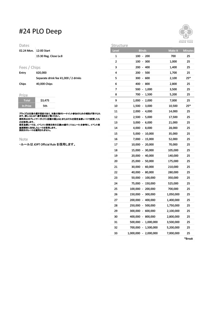 | 公式ページ | https://japanopenpoker.com/sapporo/ |