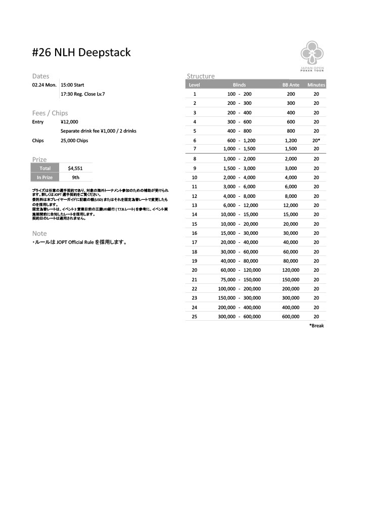 | 公式ページ | https://japanopenpoker.com/sapporo/ |