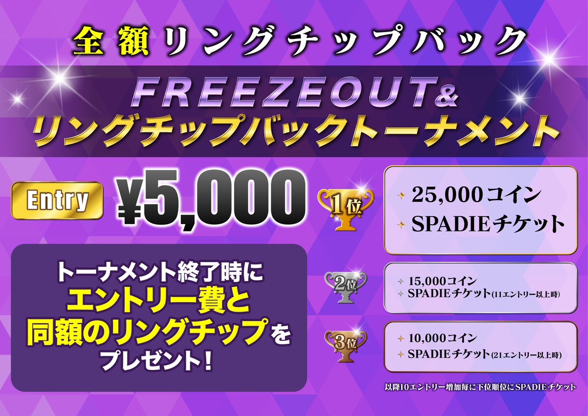 【トーナメント終了後リングチッププレゼント】フリーズアウト&リングチップバック