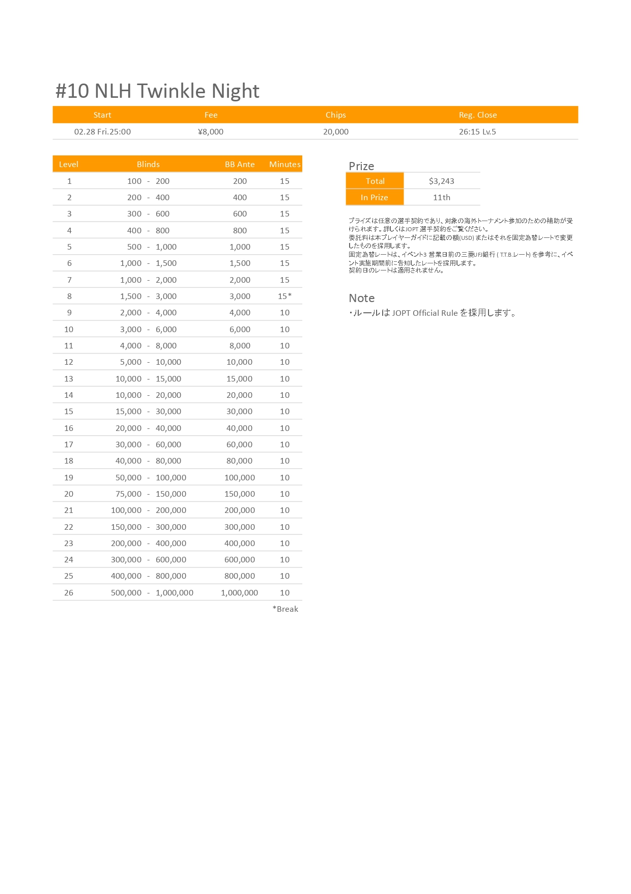 | 店舗名 | JAPAN OPEN POKER TOUR |