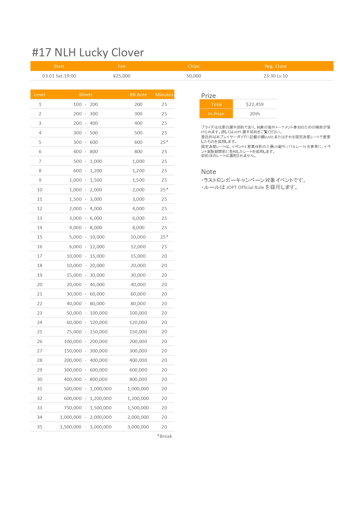 | 店舗名 | JAPAN OPEN POKER TOUR |