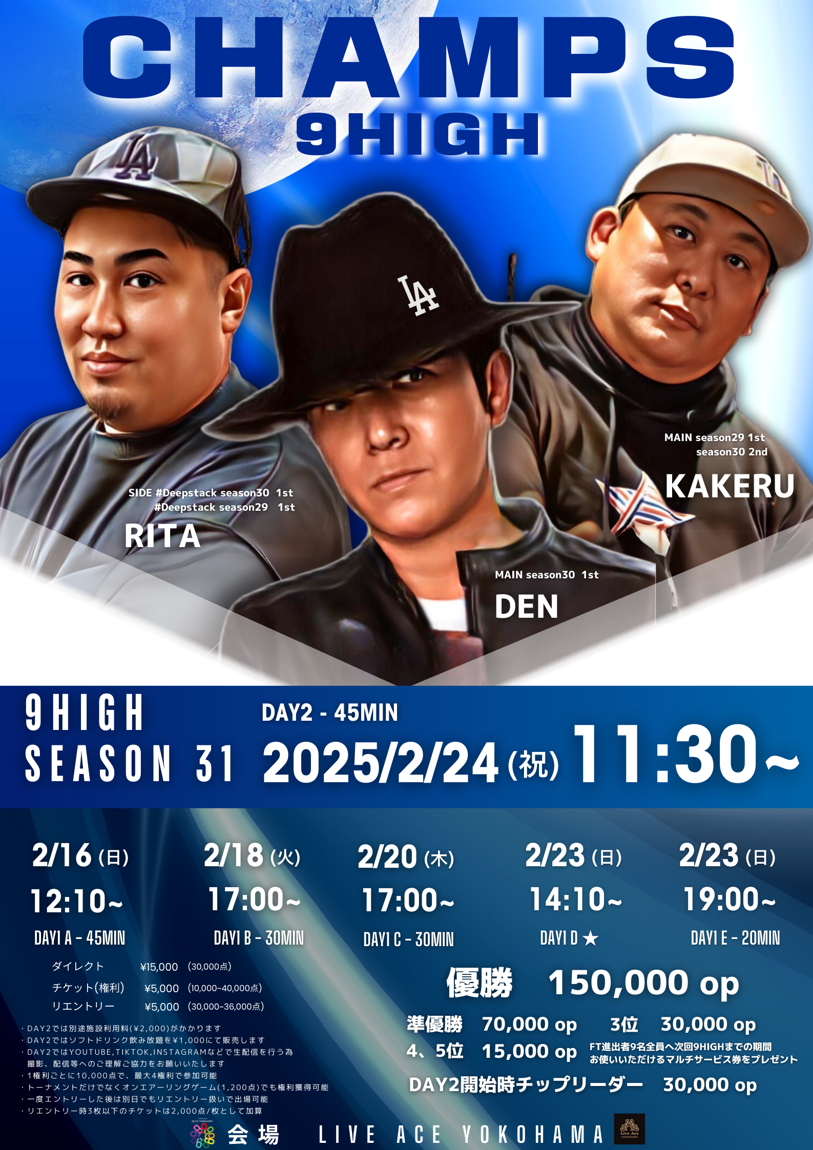 9high season31【DAY2】入場開始11:00 トーナメントスタート11:30