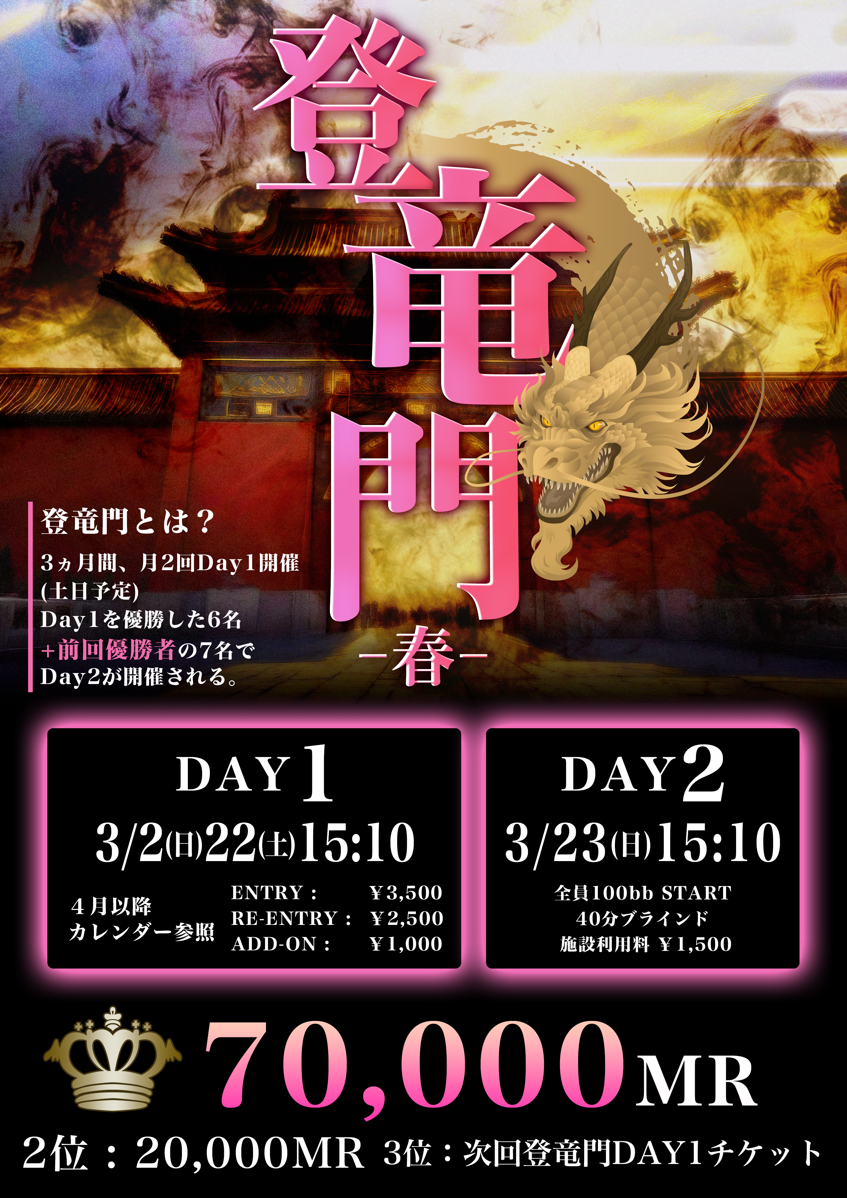 【優勝70,000MR!DAY2 : 3/23(日)】登竜門-春- DAY1 【ダイレクトバイインONLY】
