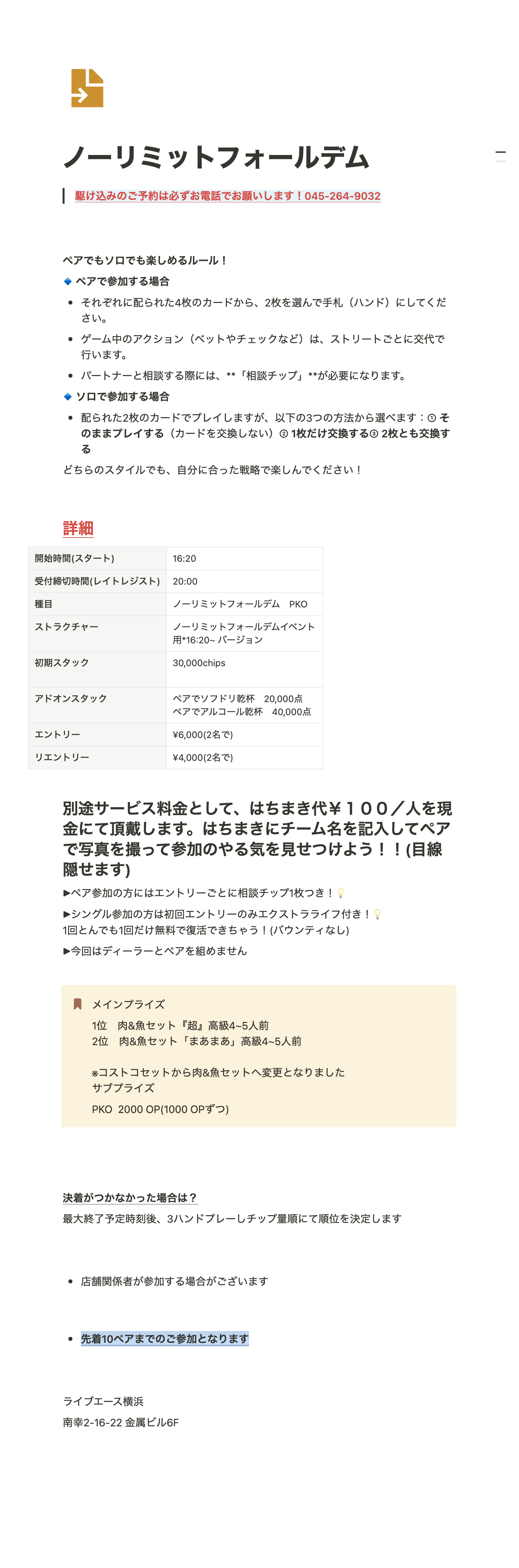【横浜駅徒歩4分/ペア戦】ノーリミットフォールデム【レイト20:30に変更】