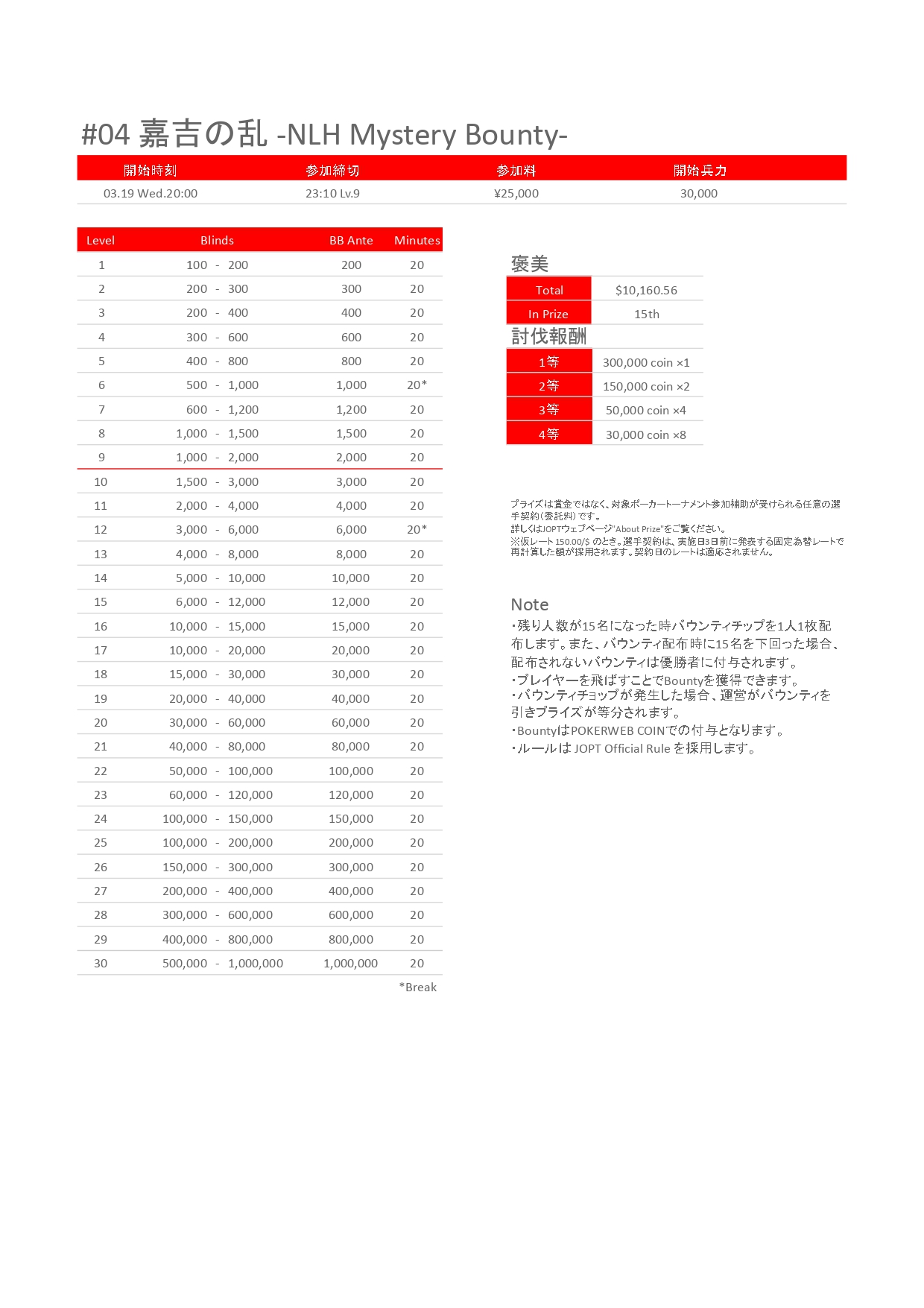 | ゲーム | 30,000点 / ノーリミット / テキサスホールデム / normal / Others |
