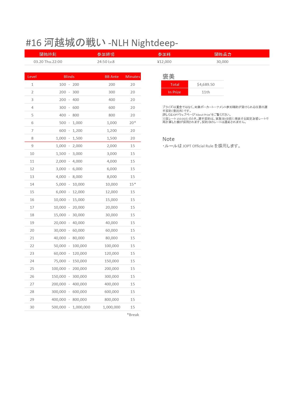 | ゲーム | 30,000点 / ノーリミット / テキサスホールデム / normal / Others |