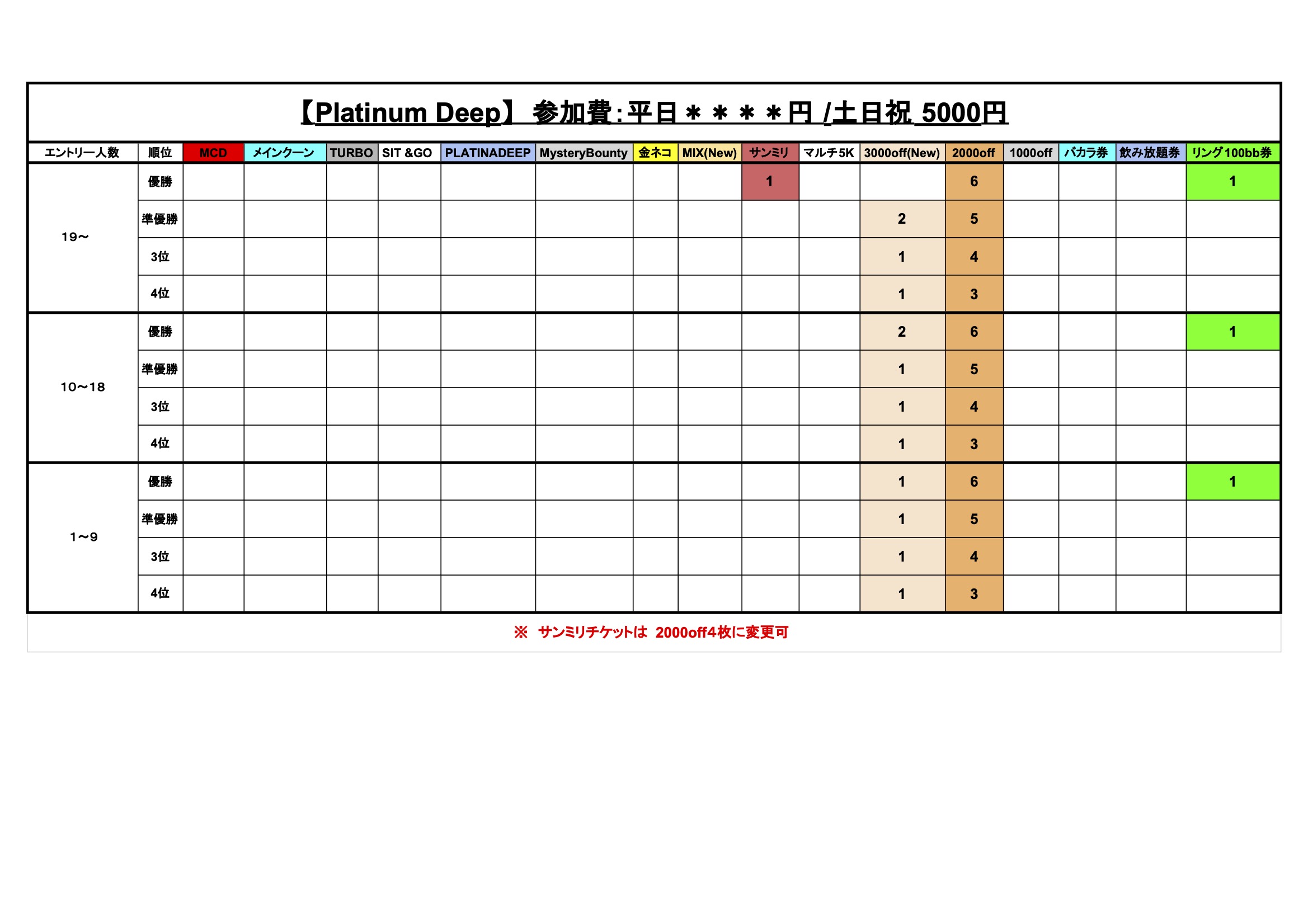 ♡PLATINA DEEP・・・土日祝11:00〜開催されるトーナメントに無料でエントリーできます