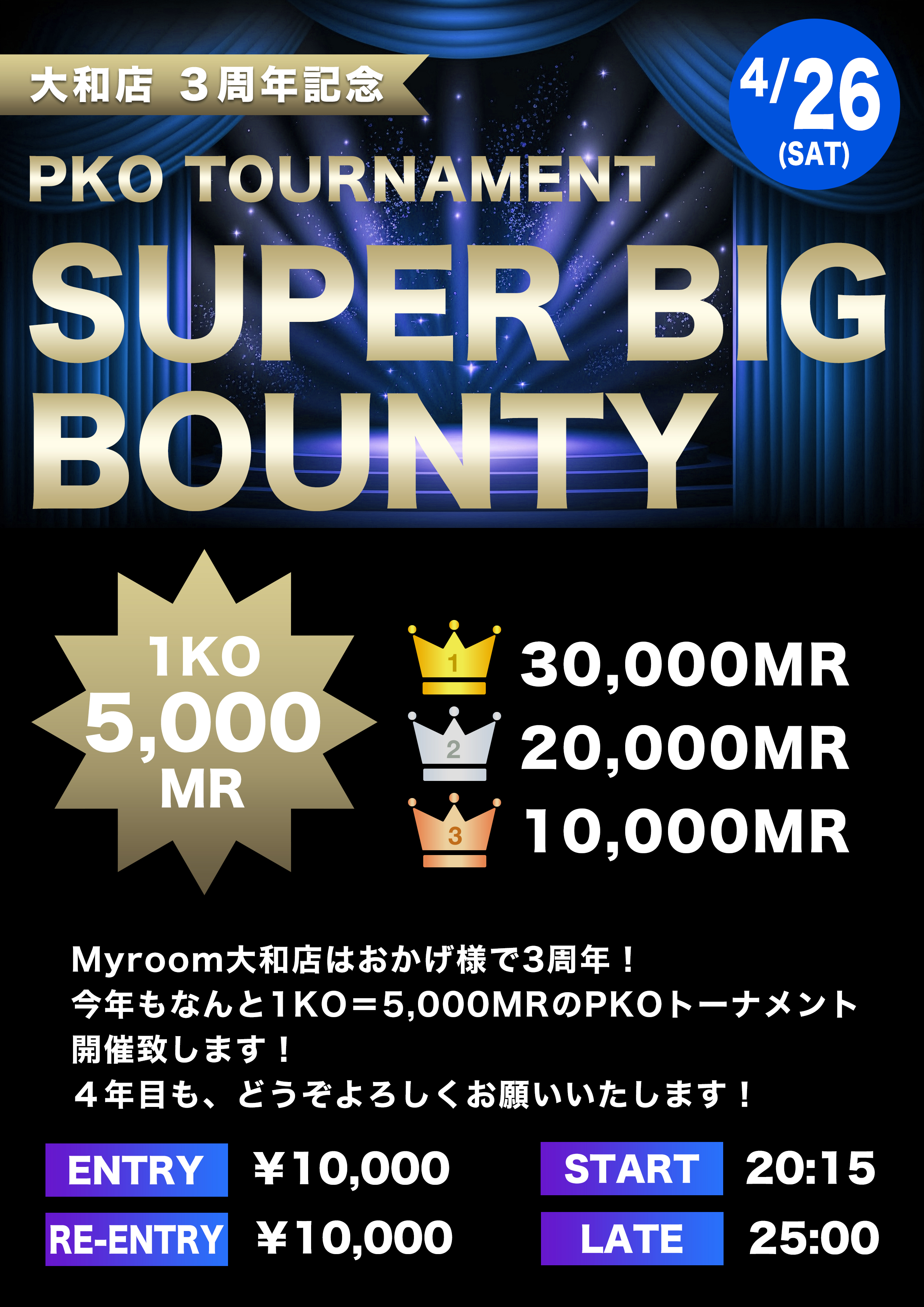 ・BIG BOUNTY は当店月一の看板トーナメント!バウンティ1枚3,000MRのPKOトーナメント!