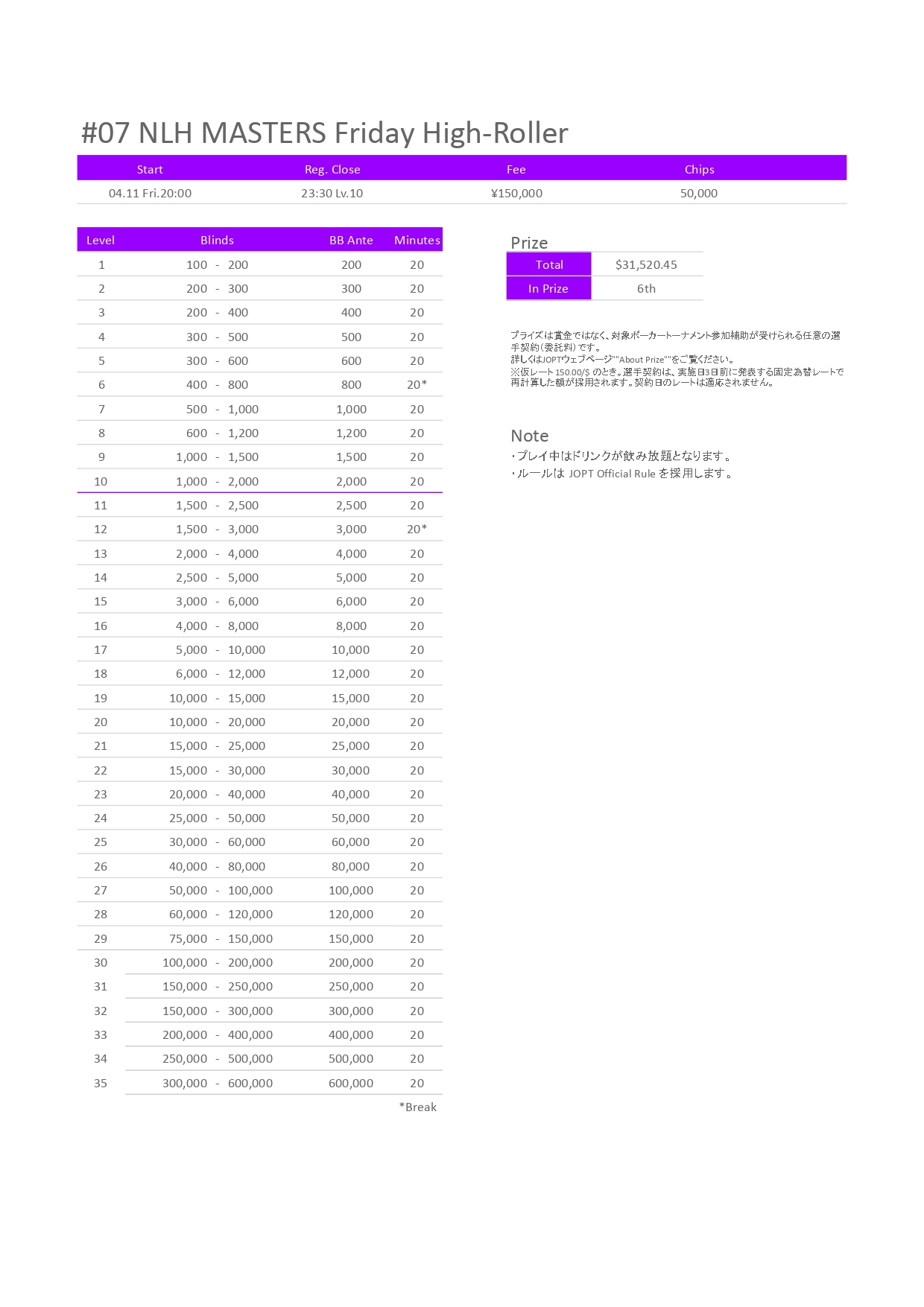 ★Tournament Start : 20:00