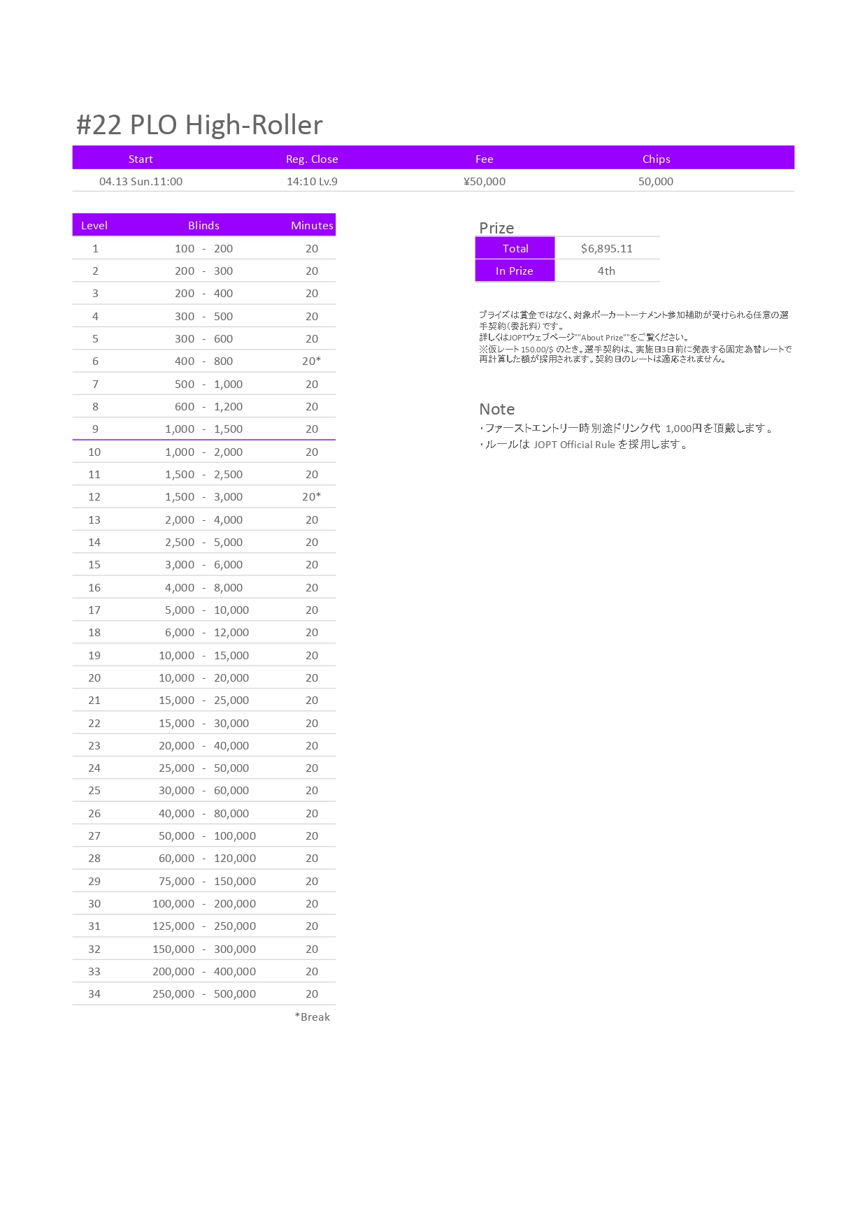 | ゲーム | 50,000点 / ポットリミット / オマハ / normal / Others |