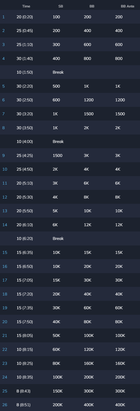 - 30,000トーナメントチップ or 200リングチップ