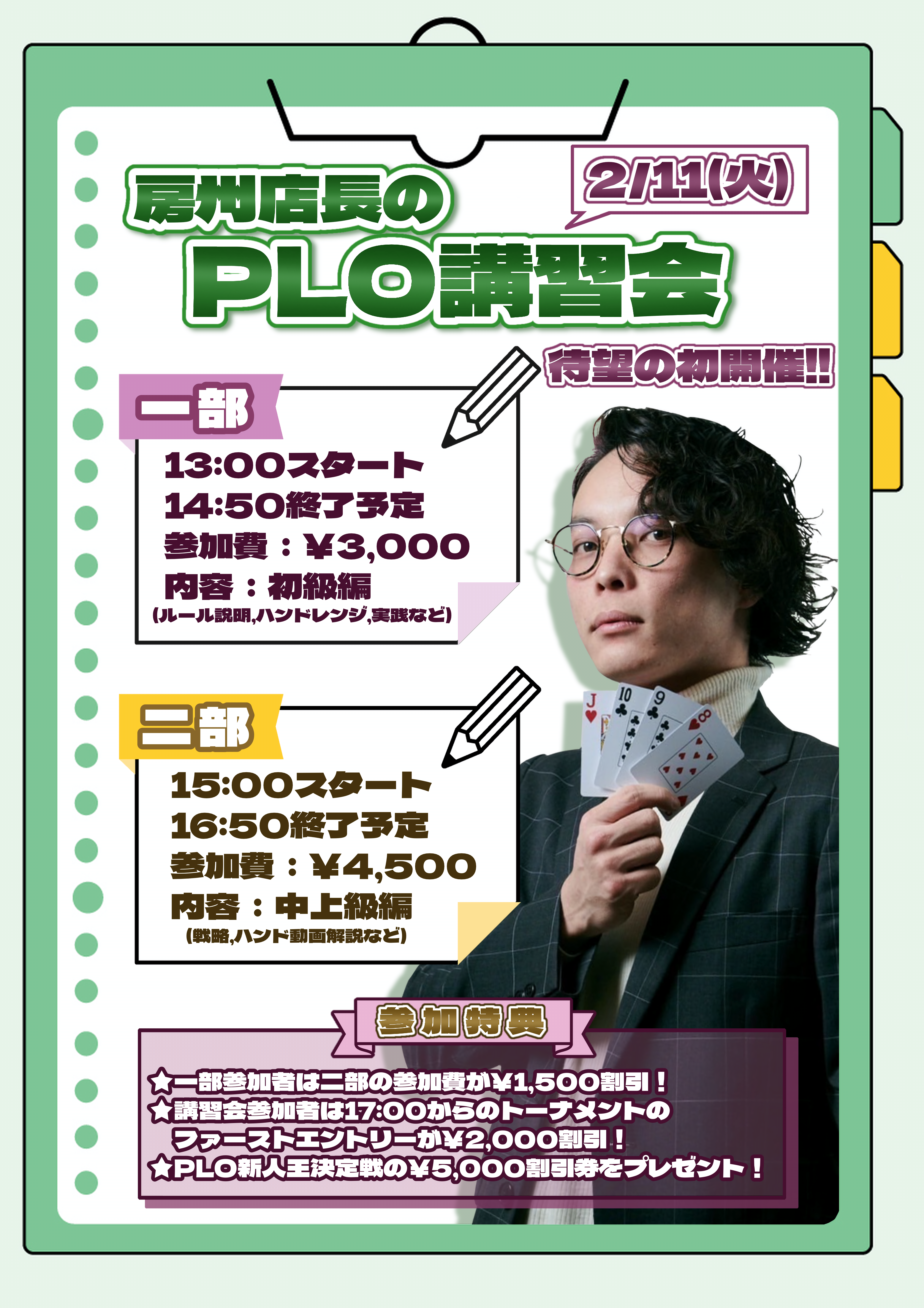 ※18:00からはPLOトーナメントを開催!講習会参加者はお得に参加できます♪